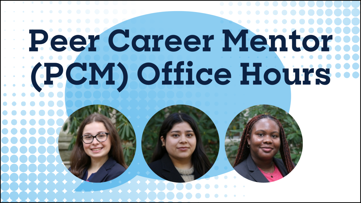 Peer Career Mentor (PCM) Office Hours are hosted by Career Education's team of dedicated PCMs — students who are passionate about supporting their fellow students and have been trained to provide support and feedback on resumes and cover letters.